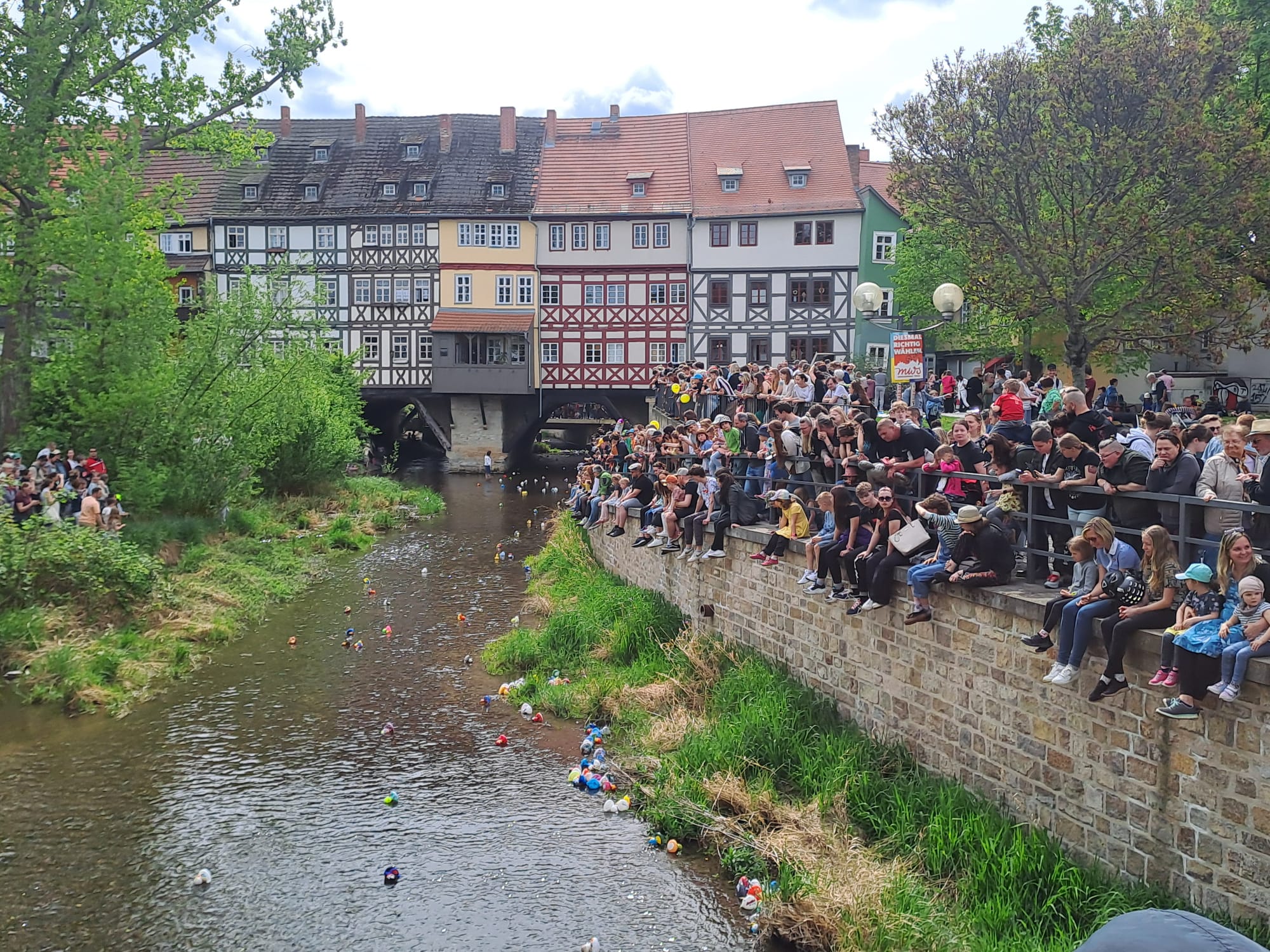 Nach vier Jahren Zwangspause heißt es wieder „Zeit, um die Wette zu schwimmen“ und damit eine alte Erfurter Tradition erneut aufleben zu lassen. Um die Wette schwimmen dabei nicht die Mitarbeiter des Gewässerunterhaltungsverbandes, sondern viel mehr die 3.000 selbstgestalteten Enten von Künstlern jeden Alters.