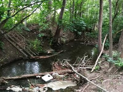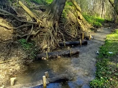Bau Totholzfang am Peterbach in Erfurt-Büßleben